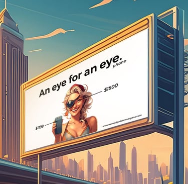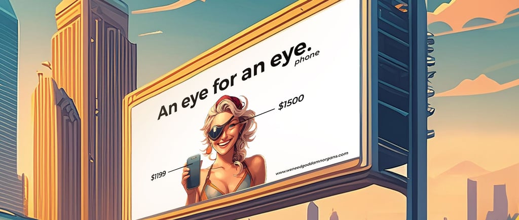 "Babe what if Apple collabs with some black market organ harvester and made an ad with the headline 'an eye for an eye.. phone'"
